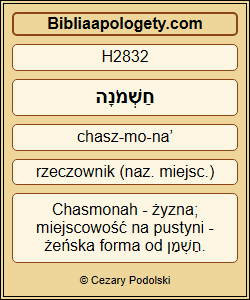 | L16 | Lb33_29 | 29 And they went <05265> (08799) from Mithcah <04989>, and pitched <02583> (08799) in Hashmonah <02832>. | |||