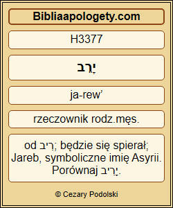 Spostrzegł H7200 Efraim H669 swoją niemoc H2483 , a Juda H3063 zobaczył H7200 swą ranę H4205 . I pospieszył H1980 Efraim H669 do Asyrii H804 , zwrócił się H7971 Juda H3063 do wielkiego H7227 króla H4428 , lecz on H1931 was nie H3808 może H3201 uleczyć H7495 ani uwolnić H1455 od rany H4205 . |