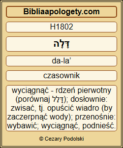 Psalm. Pieśń na uroczystość poświęcenia świątyni. Dawidowy.Wysławiam H7311 Ciebie, Panie H3068 , boś mnie wybawił H1802 i nie uradowałeś H8055 mych wrogów H341 z mojego powodu. |
