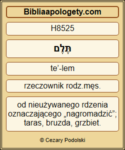 bruzdy H8525 jej nawodniłeś H7301 , wyrównałeś H5181 jej skiby H1417 , deszczami H7241 ją spulchniłeś H4127 i pobłogosławiłeś H1288 jej płodom H6780 . |