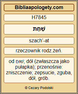 Wykopał H3738 dół H953 i pogłębił go H2658 , lecz wpadł H5307 do jamy H7845 , którą przygotował H6466 . |