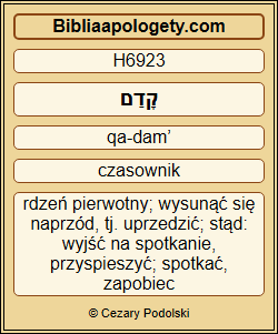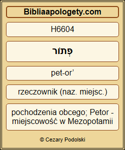 za to, że nie wyszli H6923 oni ku wam na drogę H1870 z chlebem H3899 i wodą H4325 , gdyście szli H3318 z Egiptu H4714 , i jeszcze opłacili H7936 przeciwko tobie Balaama H1109 , syna H1121 Beora H1160 , z Petor H6604 w Aram-Naharaim H763 , aby cię przeklinał H7043 . |