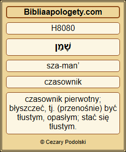 Utył Jeszurun H3484 i wierzga H1163 – grubyś H8080 , tłusty H5666 , otyły H3780 . Boga H433 , Stwórcę H6213 swego porzucił H5203 , zelżył H5034 Skałę H6697 , swoje ocalenie H3444 . |