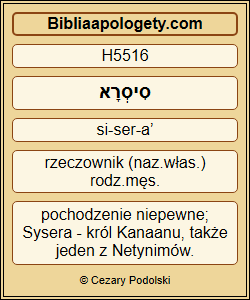 | L01 | Sdz5_20 | Gwiazdy H3556 z niebios H8064 walczyły H3898 , ze swoich dróg H4546 walczyły H3898 przeciw Siserze H5516 . |
