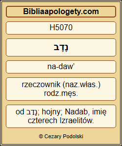 I H559 rzekł H559 [Pan] H3068 do H413 Mojżesza: H4872 Wstąp H5927 do H413 Pana, H3068 ty, H859 Aaron, H175 Nadab, H5070 Abihu H30 i H7657 siedemdziesięciu H7657 ze H4480 starszych H2205 Izraela H3478 i H7812 oddajcie pokłon H7812 z H4480 daleka. H7350 |