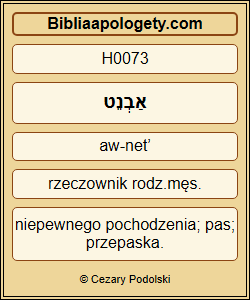 Także H1571 dla synów H1121 Aarona H175 zrobisz H6213 tunikę H3801 i H6213 uczynisz H6213 im H1992 pasy H73 oraz H6213 mitry H4021 na H5921 cześć H3519 i H5921 ku ozdobie. H8597 |