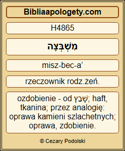 wreszcie w czwartym H7243 rzędzie H2905 chryzolit H8658 , onyks H7718 i jaspis H3471 . Były osadzone H5437 w oprawach H4865 ze złota H2091 w odpowiednich H4396 rzędach H2905 . |
