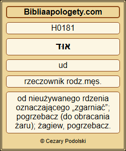 [Anioł] Pański H3068 tak przemówił H559 do szatana H7854 : Pan H3068 zakazuje ci tego H1605 , szatanie H7854 , zakazuje ci tego H1605 Pan H3068 , który wybrał H977 Jeruzalem H3389 . Czyż nie jest H3808 on H2088 niby głownia H181 wyciągnięta H5337 z pożogi H784 ? |