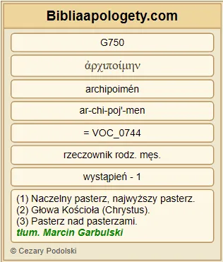 Starszych G4245 więc G3767 , którzy są G1510 wśród G1722 was G5213 , proszę G3870 , ja G1473 również G2532 starszy G4850 , a przy tym G2532 świadek G3144 Chrystusowych G5547 cierpień G3804 oraz G2532 uczestnik G2844 tej G3588 chwały G1391 , która ma się objawić G3195 G601 : |