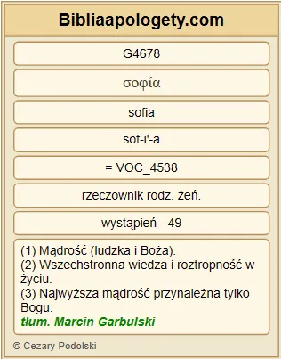 I G2532 usłyszałem G191 wszelkie G3956 stworzenie G2938 w G1722 niebie G3772 , na G1909 ziemi G1093 , pod G5270 ziemią G1093 , na G1909 morzu G2281 i wszystko G3956 , co w nich G1722 , jak mówiło G3004 : Błogosławieństwo G2129 i G2532 cześć G5092 , i G2532 chwała G1391 , i G2532 moc G2904 Zasiadającemu G2521 na G1909 tronie G2362 i G2532 Barankowi G721 na wieki G1519 G3588 G165 G3588 G165 . |