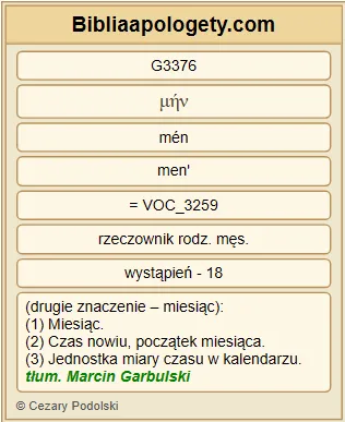 A G2532 pozostali G3062 ludzie G444 , którzy nie G3756 zostali zabici G615 przez G1722 te G5025 plagi G4127 , nie G3761 odwrócili się G3340 od G1537 dzieł G2041 swoich G846 rąk G5495 , by G2443 nie oddawać pokłonu G3361 G4352 demonom G1140 i G2532 bożkom G1497 złotym G5552 , srebrnym G693 , spiżowym G5470 , kamiennym G3035 i G2532 drewnianym G3585 , które nie G3777 mogą G1410 ani widzieć G991 , ani słyszeć G191 , ani chodzić G4043 . |