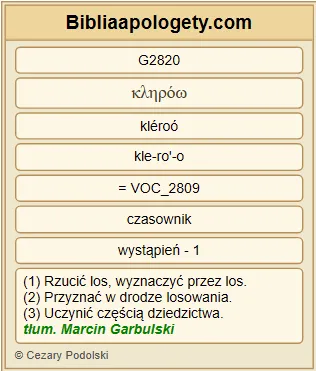(20) Wykazał On je G1754 , gdy G1722 wskrzesił G1453 Go G846 z G1537 martwych G3498 i G2532 posadził G2523 po G1722 swojej G846 prawicy G1188 na wyżynach niebieskich G2032 , |