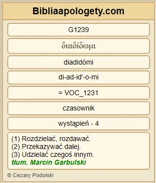 Natychmiast G3916 przejrzał G308 i szedł G190 za Nim G846 , wielbiąc G1392 Boga G2316 . Także cały G3956 lud G2992 , który to widział G3708 , oddał chwałę G136 Bogu G2316 . |